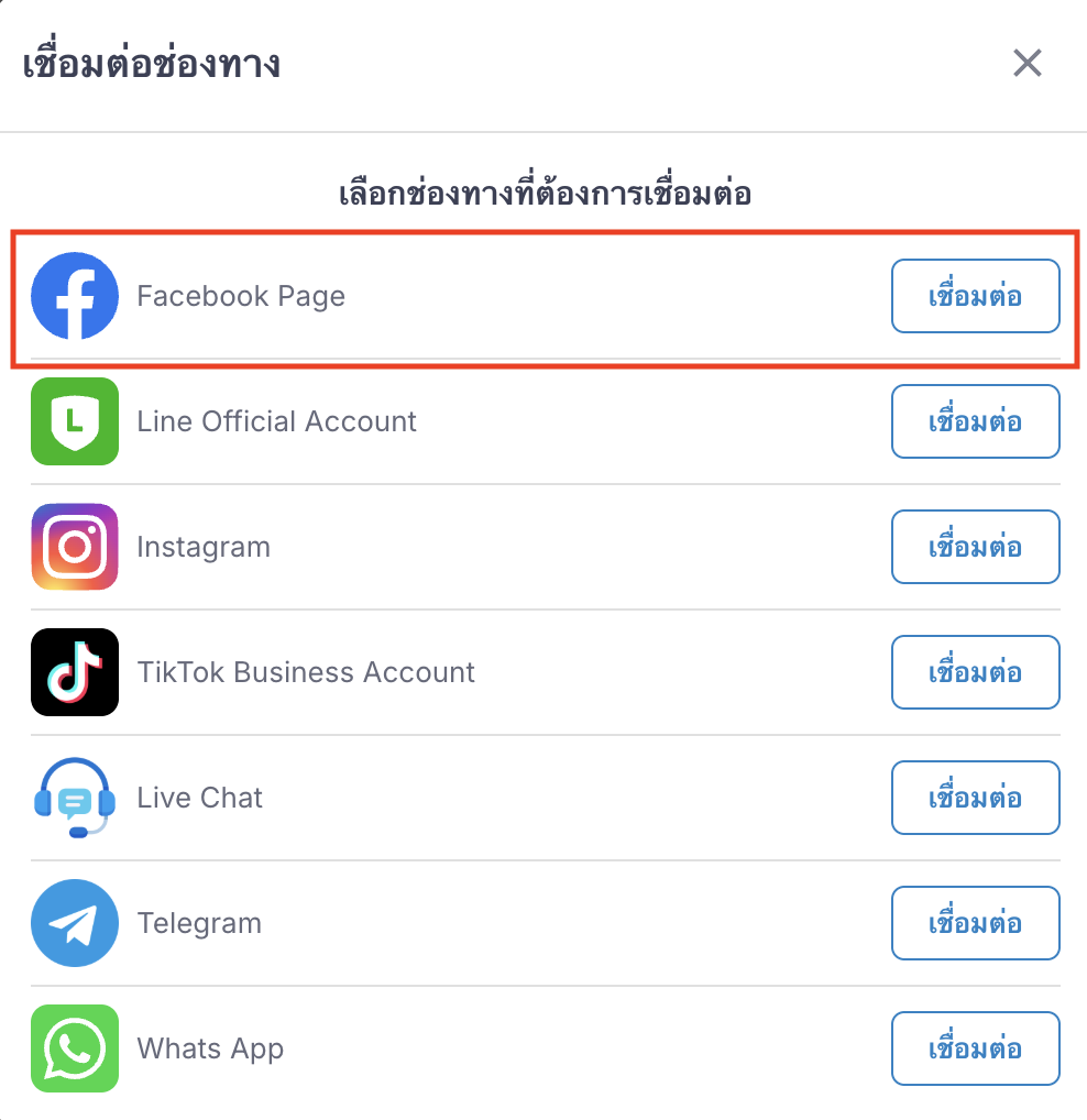 2. กดเชื่อมต่อช่องทาง “Facebook Page”