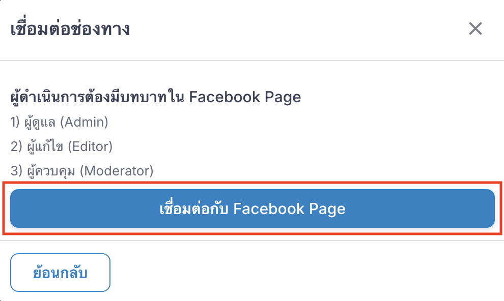 3. กดปุ่ม “เชื่อมต่อกับ Facebook Page”
