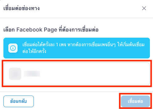 5. เลือกเพจที่ต้องการเชื่อมต่อ แล้วกดปุ่ม “เชื่อมต่อ”
